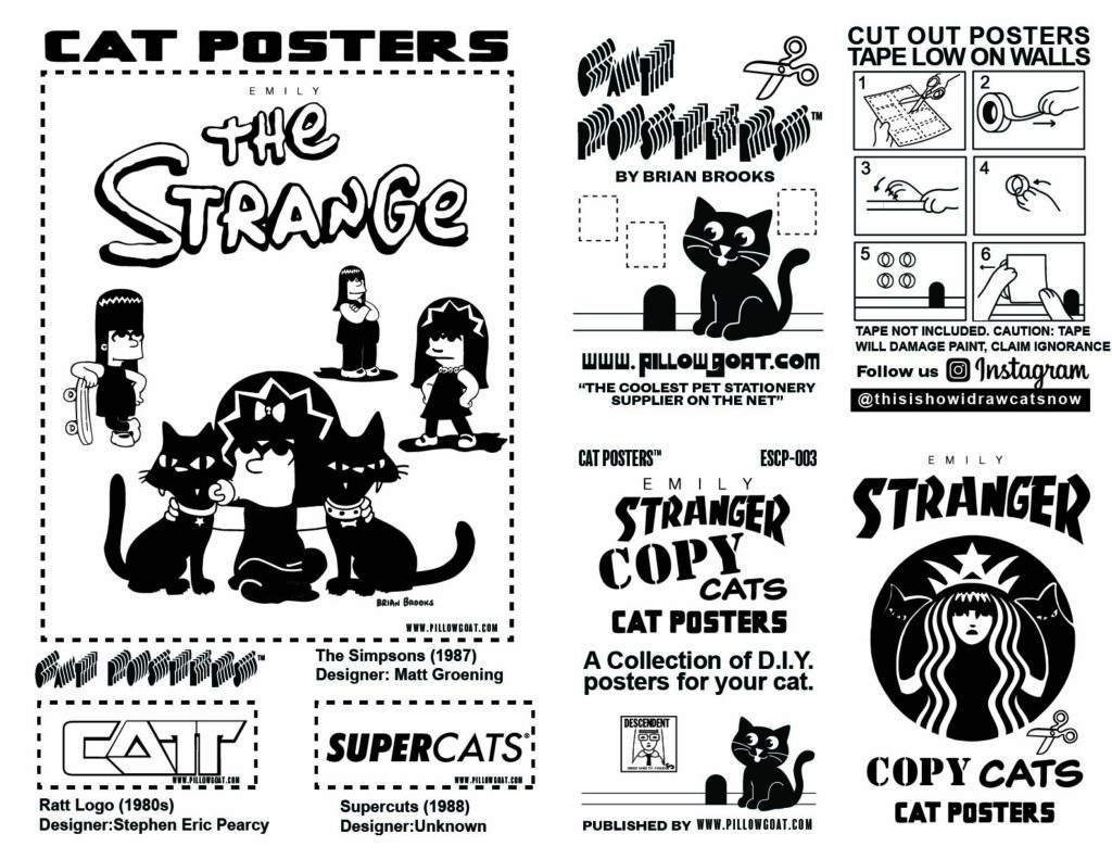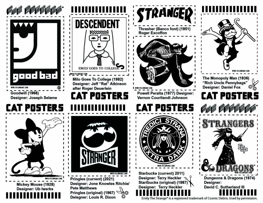 Weird Emily Strange Logo Mash-Ups. This collection began after a chance meeting with an Emily fan which brought upon inspiration. It was an exploration and meditation on what is cool, and was it okay to be corny and random and could it still be cool? Cat Posters Emily Copy Cats PDF Link